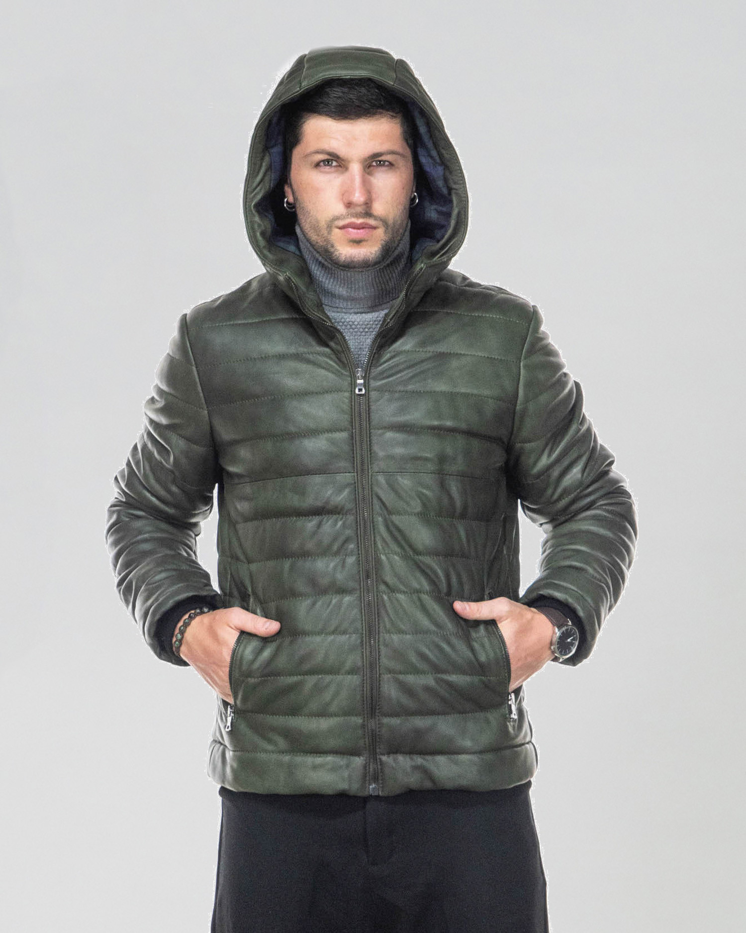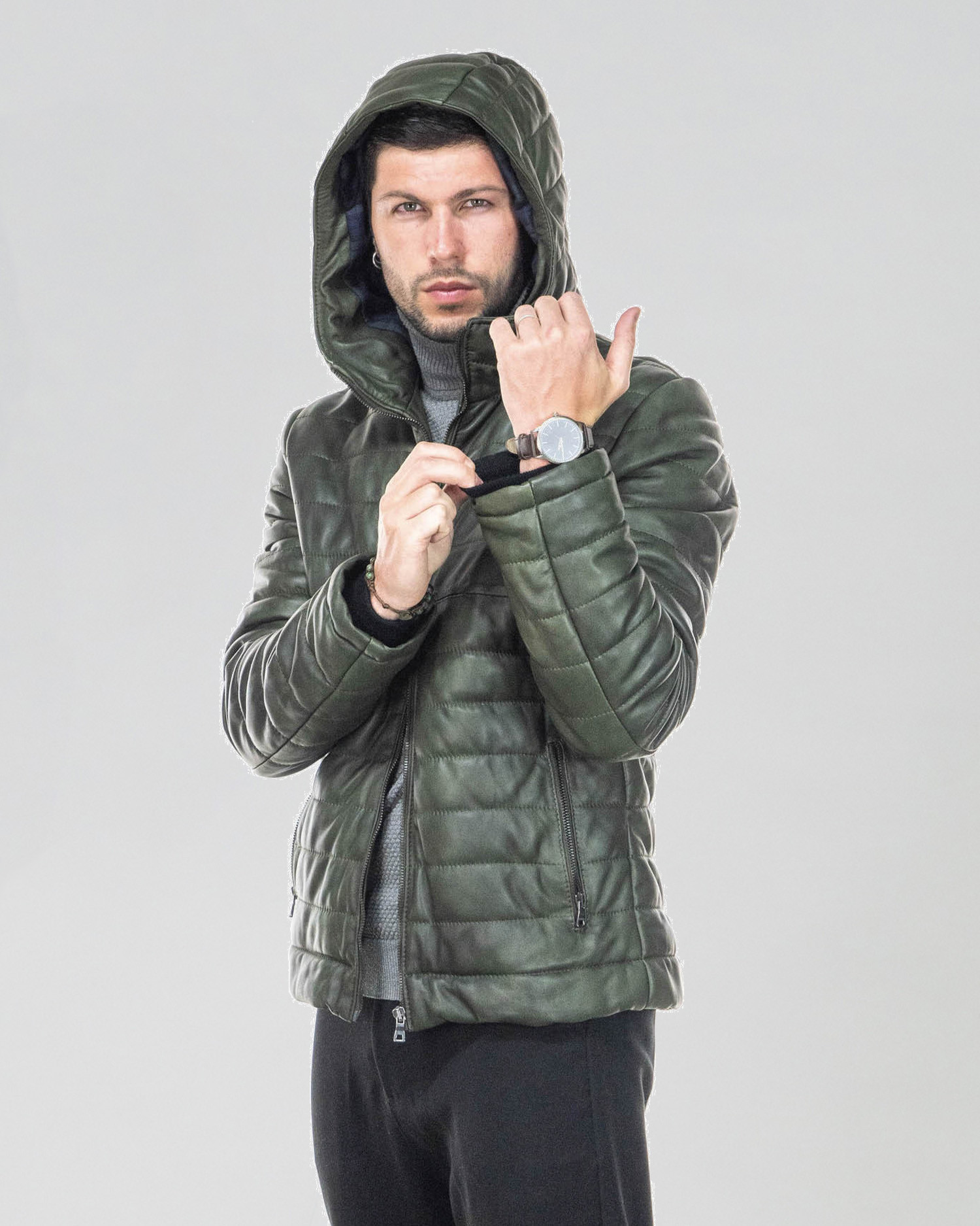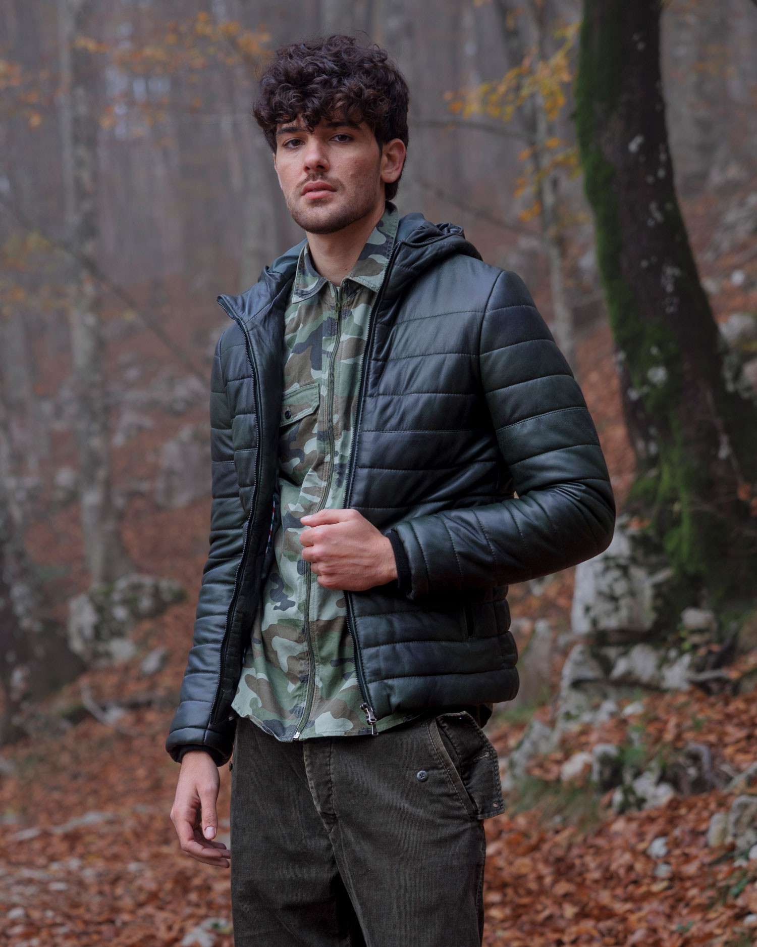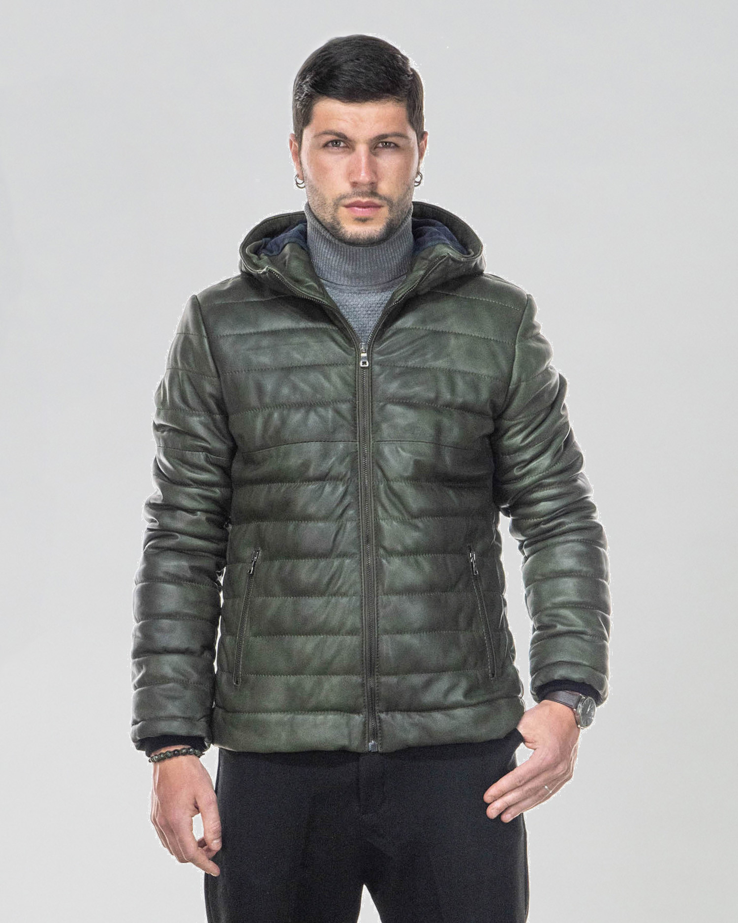 Piumino in pelle da uomo verde - Rio | Leather Trend