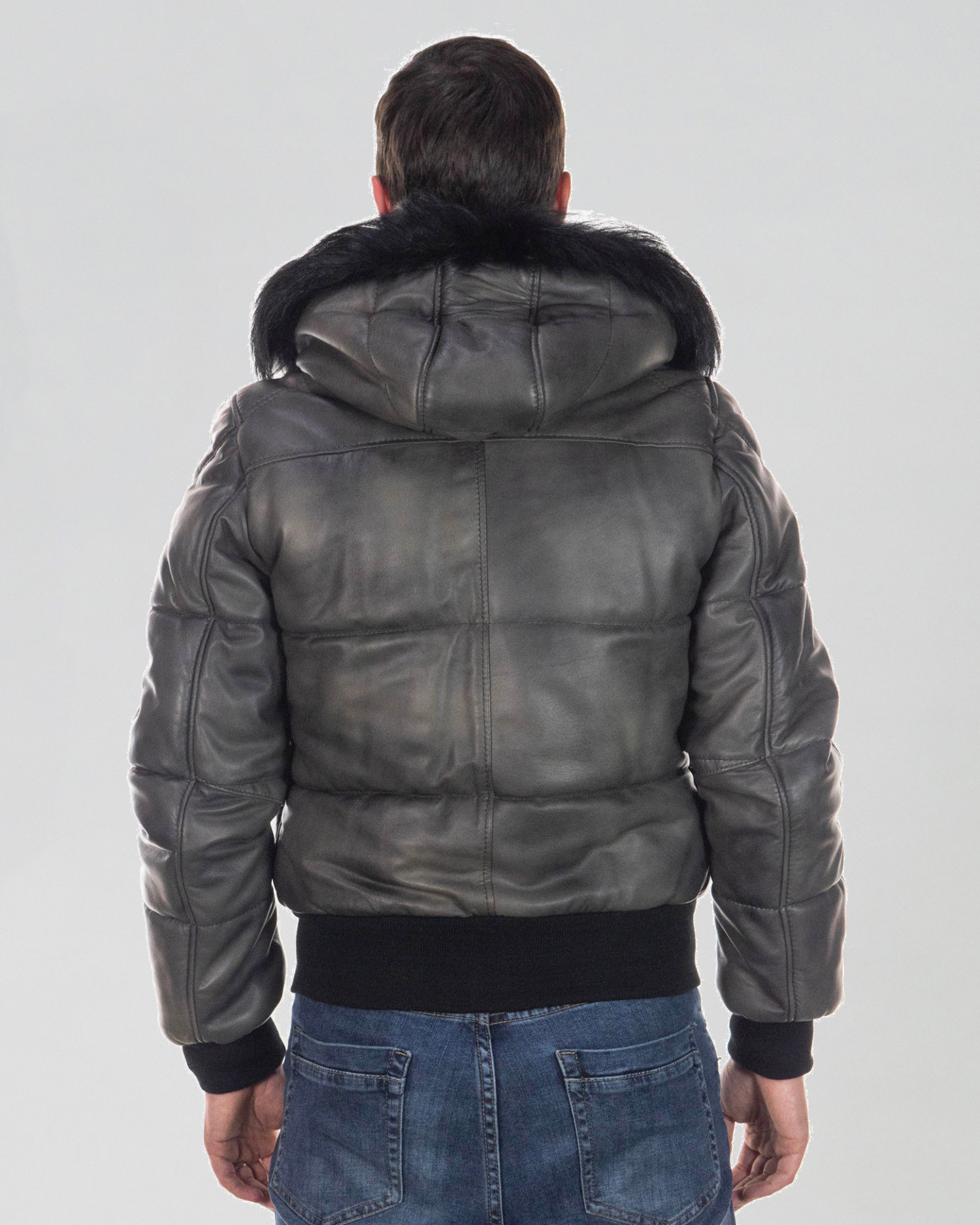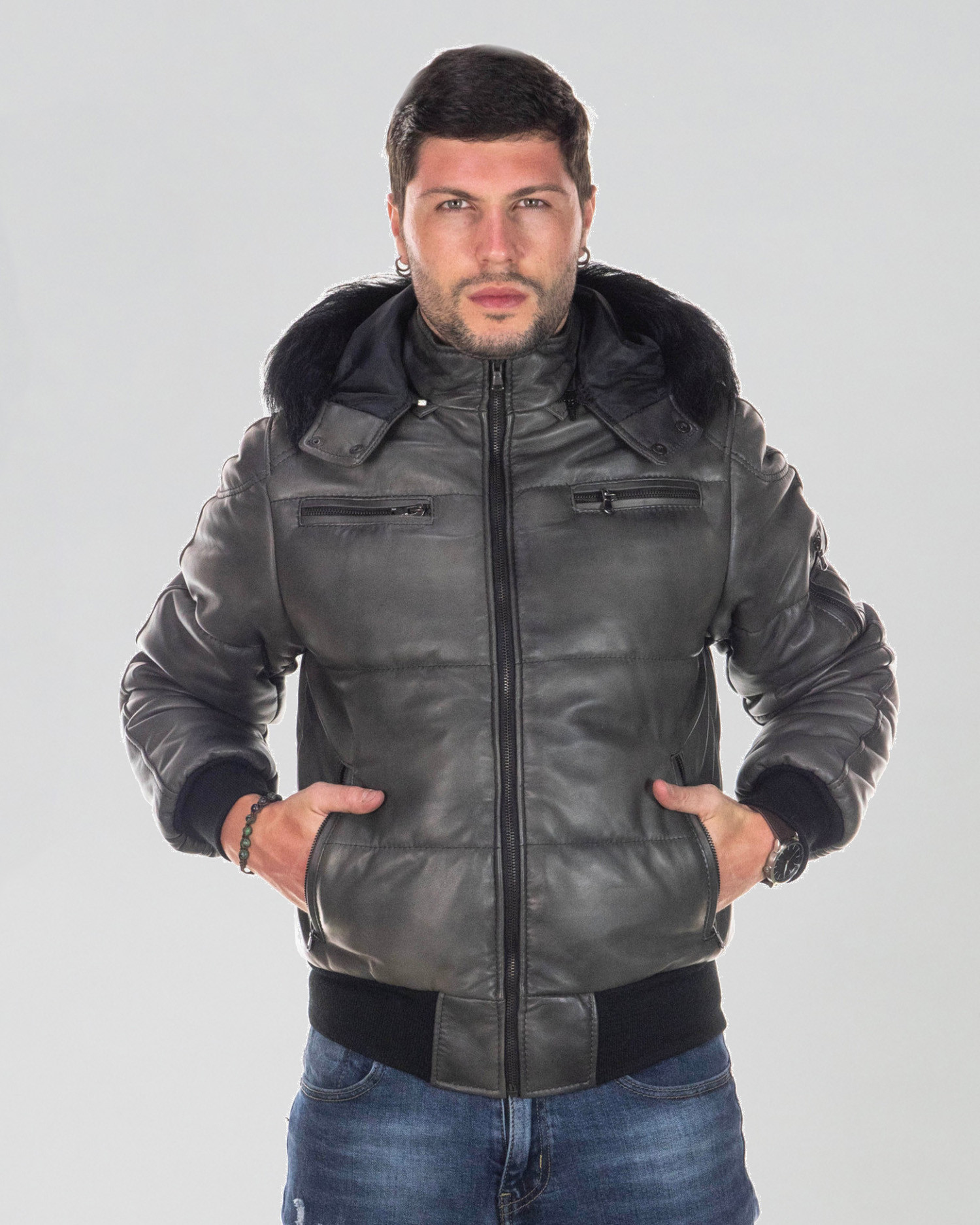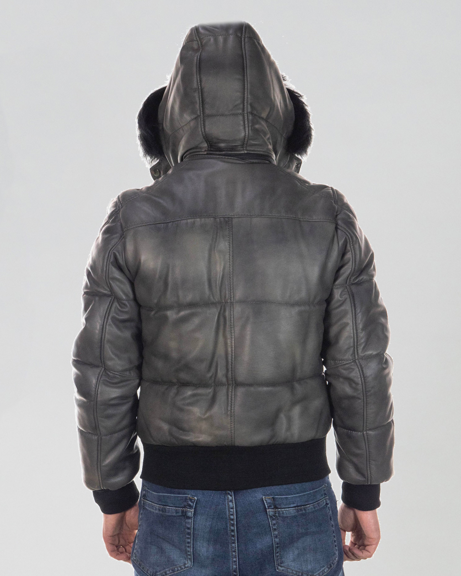 Boston - Piumino Uomo Grigio in vera pelle