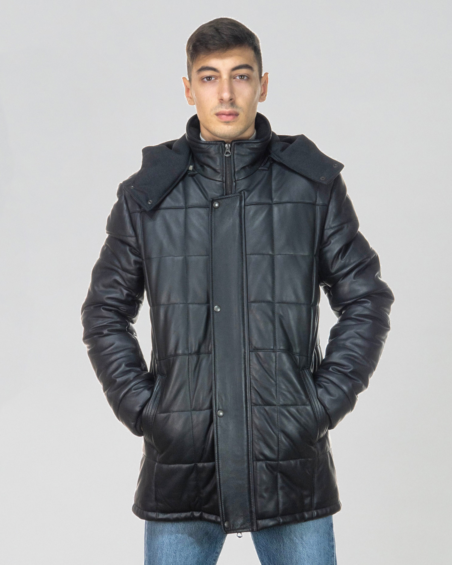 Piumino Lungo Marek - Piumino Uomo Nero in vera pelle